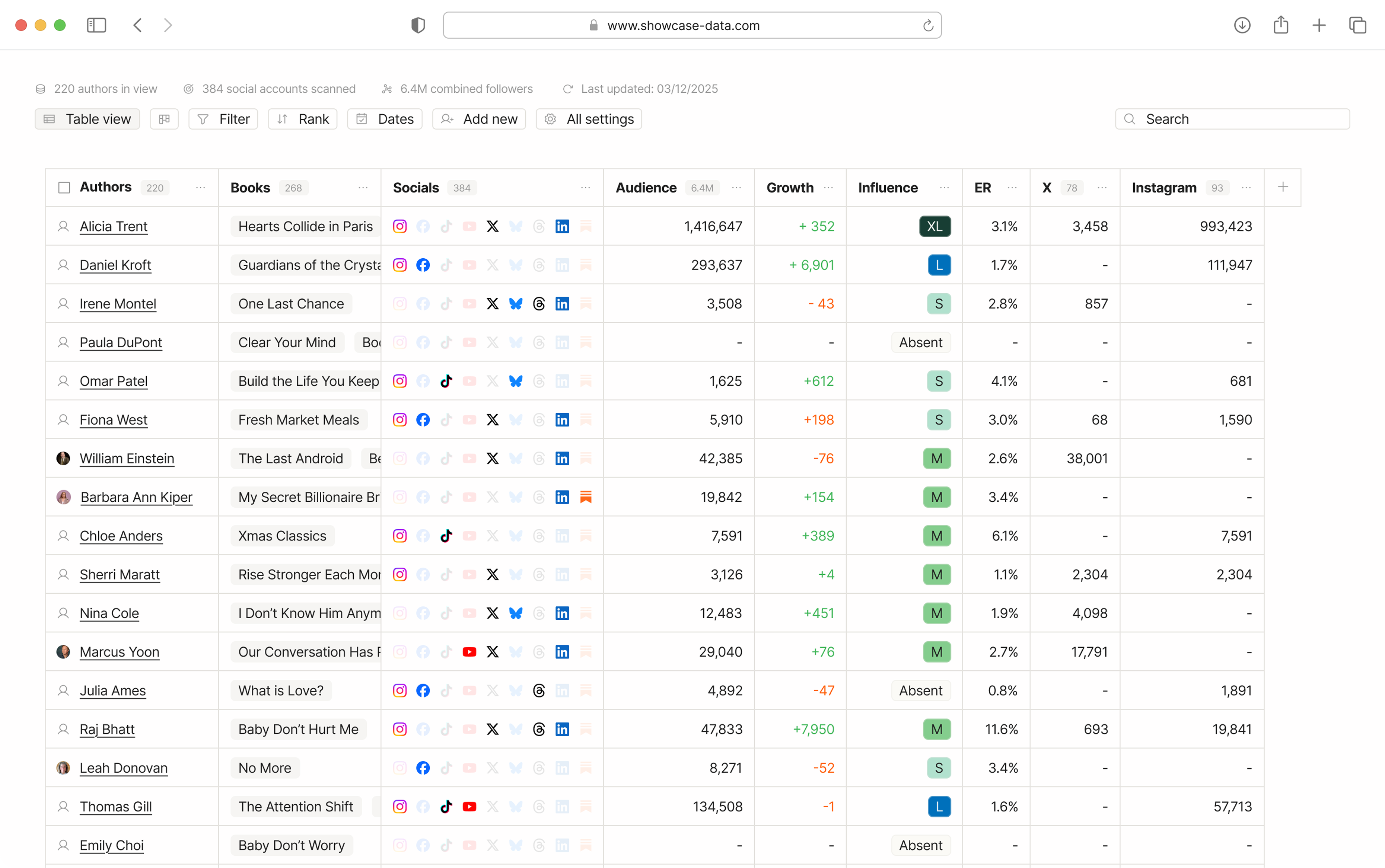 We collect and monitor book audience data from socials.